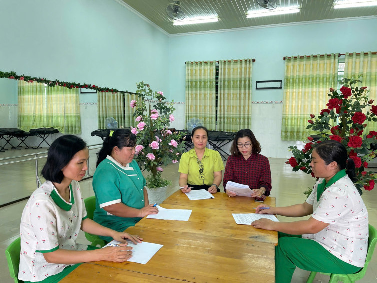 trong trường mầm non. Để giúp cho cấp dưỡng nắm vững những kiến thức về công tác đảm bảo VSATTP Ban giám hiệu trường Mầm non Định Thành đã tổ chức bồi dưỡng kiến thức cho đội ngũ cấp dưỡng. Bên cạnh đó, để nắm bắt được tình hình nhận thức của cấp dưỡng về kiến thức VSATTP nhà trường đã tổ chức khảo sát kiến thức của cấp dưỡng sau buổi tổ chức bồi dưỡng kiến thức VSATTP.
